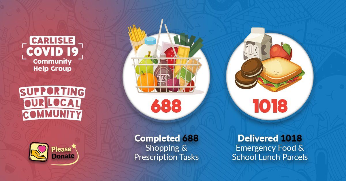 Carlisle COVID-19 Community Help Group coordinates volunteers to get groceries and other essentials for those in the community who are self-isolating, vulnerable, or struggling financially due to being out of work. They've raised over £20,000 and logged over 400 receipts, each one representing a much needed care package.