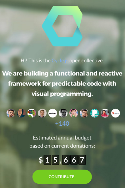Our financial backers are people and businesses who build applications with Cycle, so that’s who we serve. I’ve met a lot of them at various Cycle conferences, looking at the list of names and going, “Oh yeah cool! I know that guy Aron, he contributes hundreds of dollars a month, enabling us to build awesome features and fix all these bugs”. It’s a nice mixture of sustainable support from companies and individuals paying what they can for something they think is worthwhile.