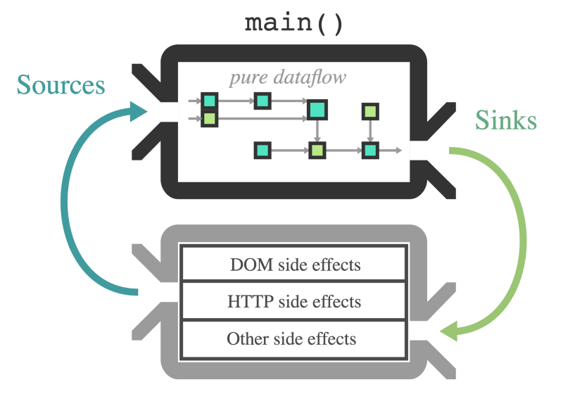 You can always tell why something will change by looking at what it’s defined from. There’s no looking at data in the application and wondering how it was changed, because defining that is the first part of writing a Cycle application.