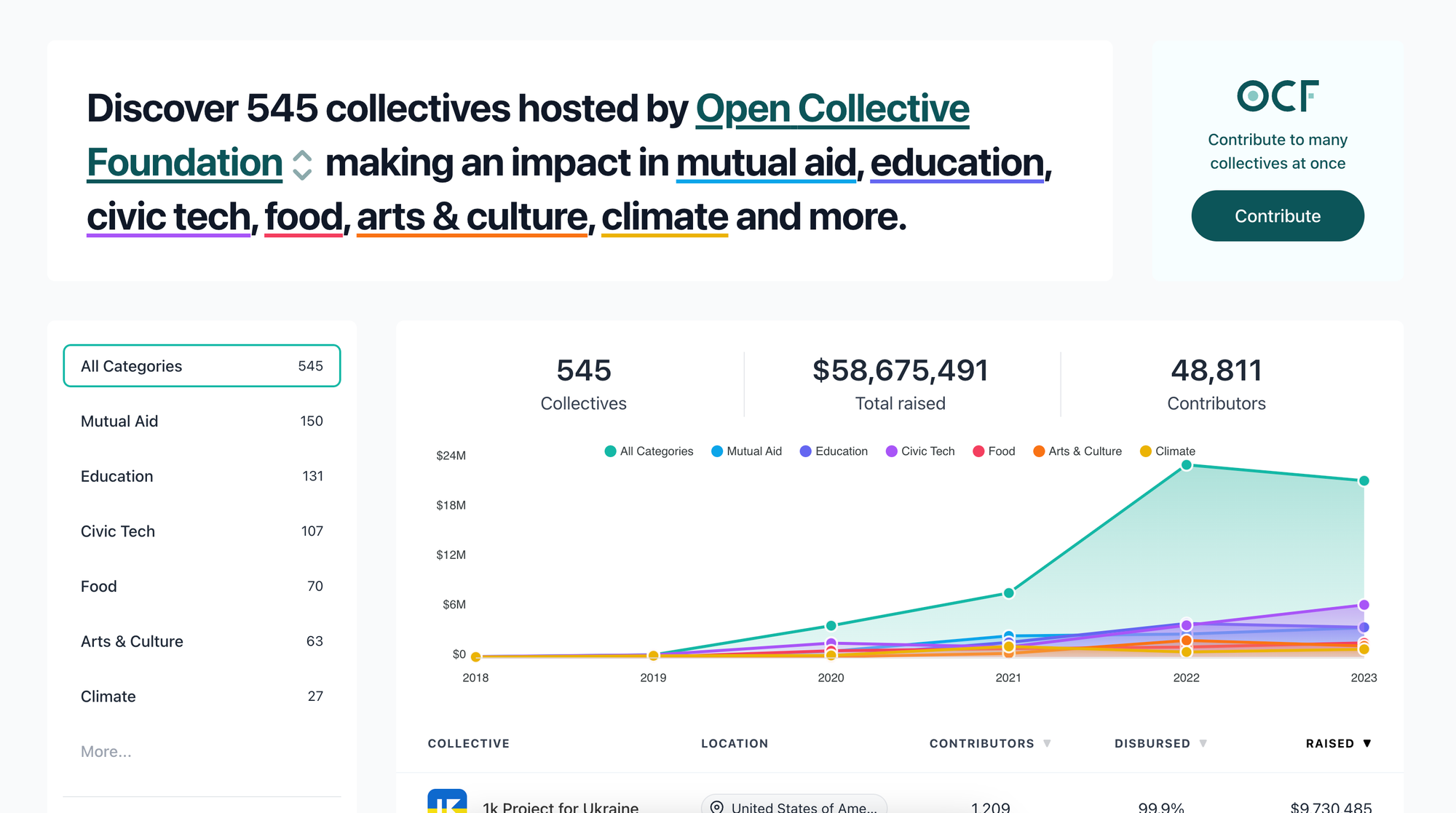 Explore our discover tool and get a sense of the types of projects needing help: View all of the collectives hosted by OCF