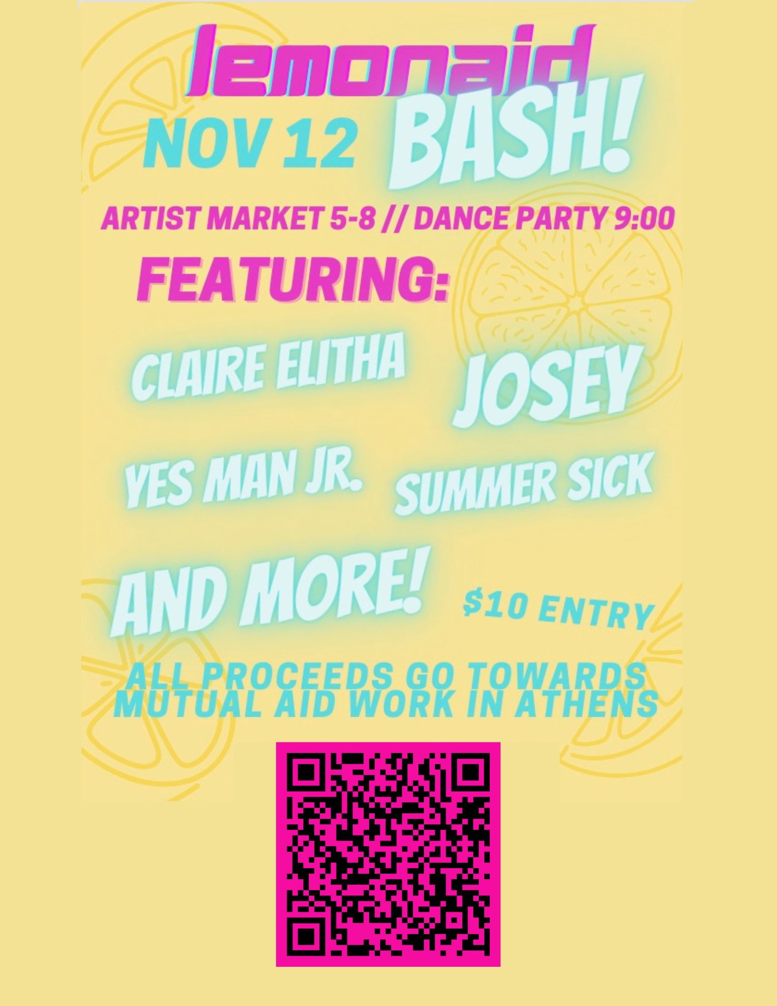 🌟 Lemonaid Athens hosted an art market and dance party in November! Fun!