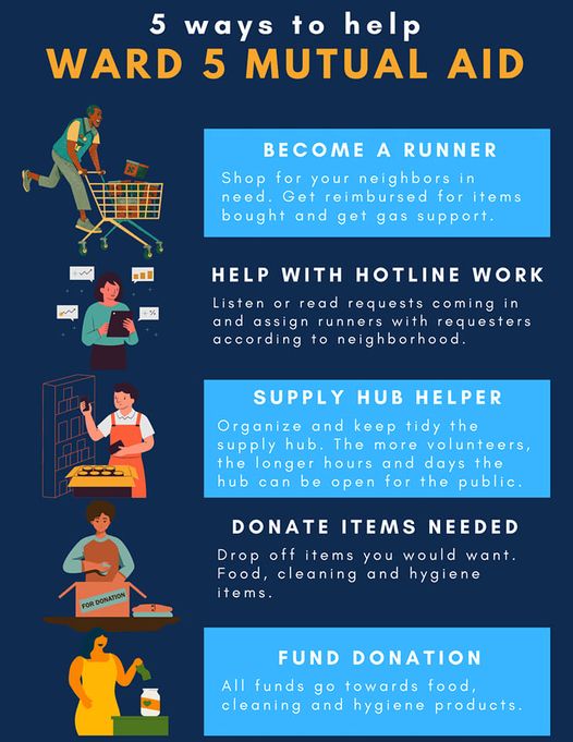 π Ward 5 Mutual Aid is a volunteer collective helping neighbors in need during COVID-19. They published in their latest update "5 ways to help Ward 5 Mutual Aid". You can check them out in the graphic below!