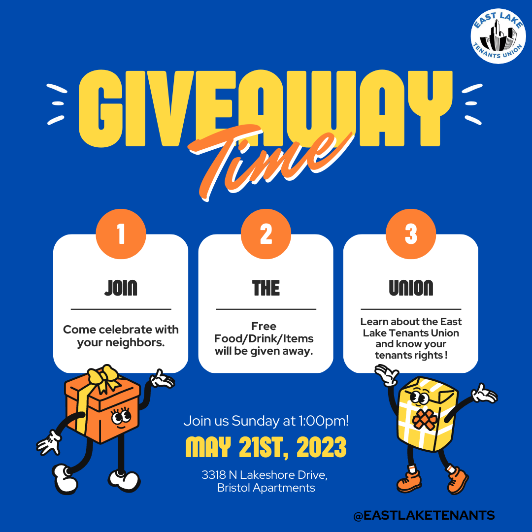 π Solidarity Fund for EastLakeTenants organizes tenants to improve the quality of life in East Lake buildings. In May they hosted a Spring Giveaway with food, drink, literature, and fun for all participants.