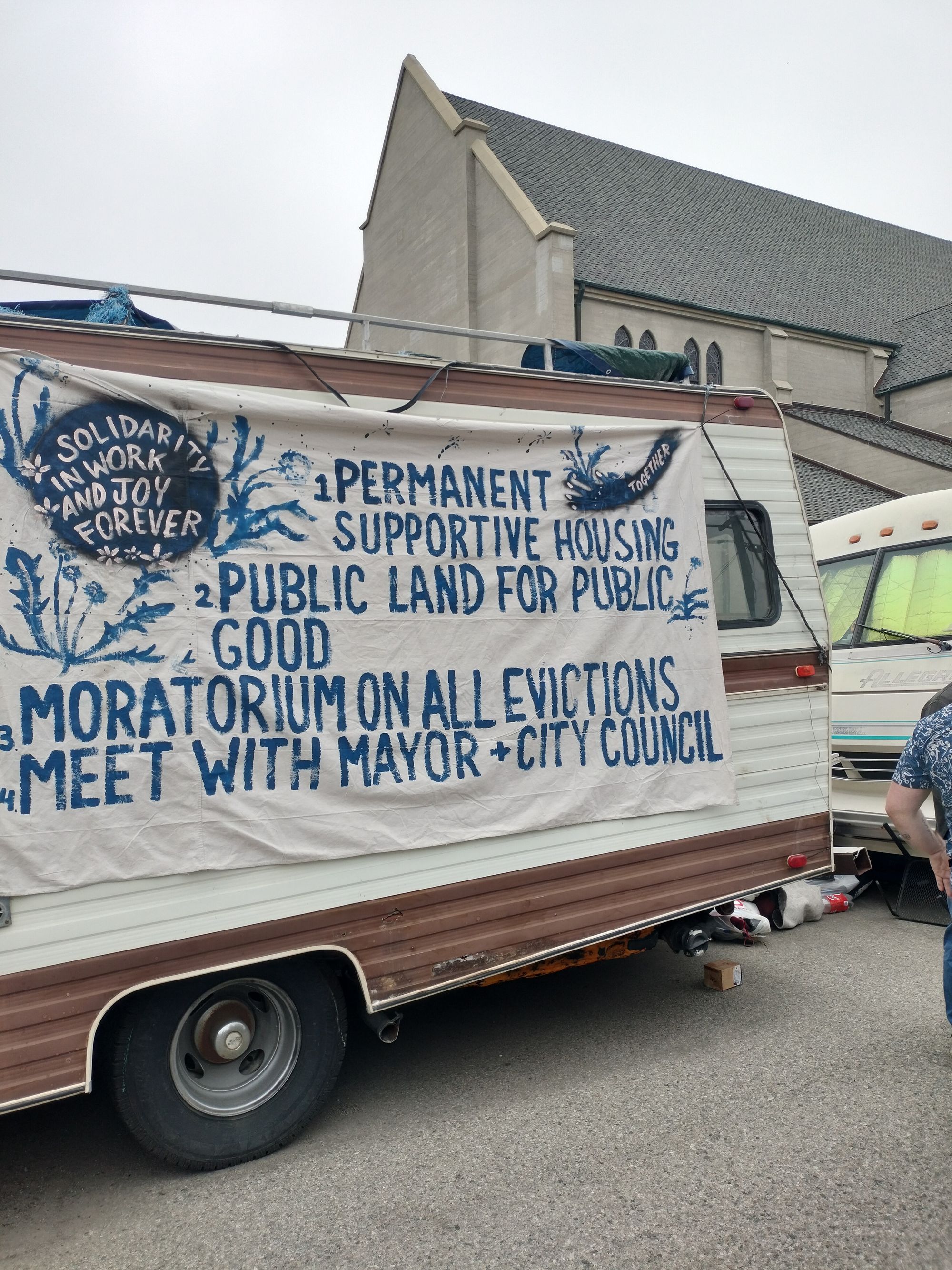 π LA Street Care are an abolitionist mutual aid collective organizing with the unhoused in parts of LA. They did a community street clean-up day to assist their unhoused neighbors at the Juanita Community in Rampart Village, working to get a street sweep downgraded to spot-cleaning. Read more about their work here.