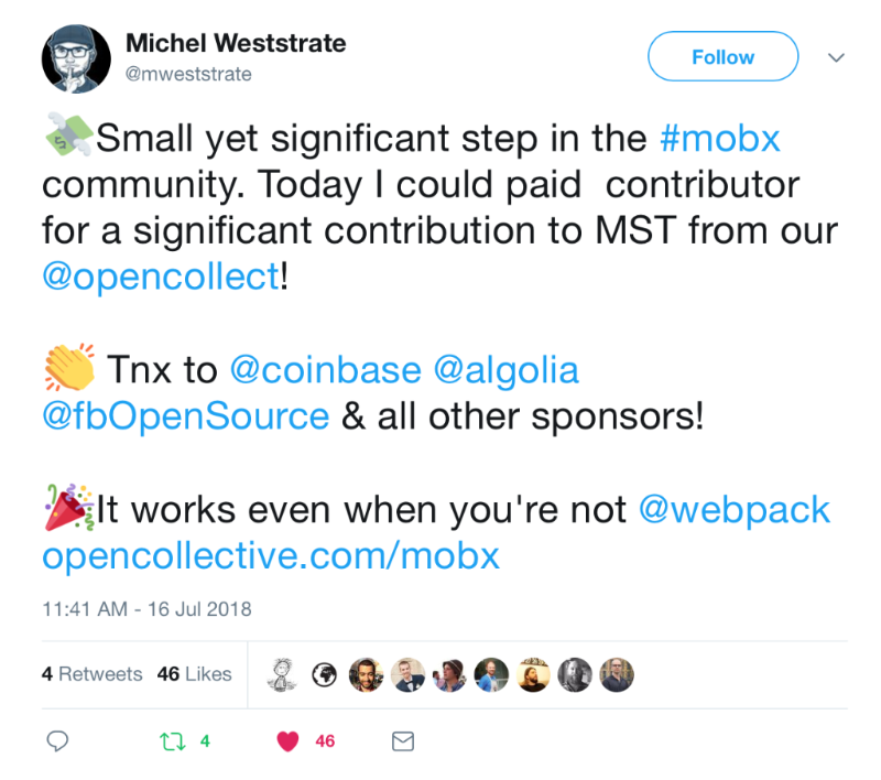 3 — Facebook Open Source ($4,850 monthly to webpack, babel, storybook, material-ui, gatsby, mobx, vue, rollup , electron, jest and parse-server)