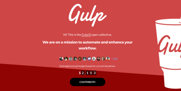 Pro tip: Customize your Open Collective page, like Grav and Gulp above. Once logged in, you can hover over elements to edit them.